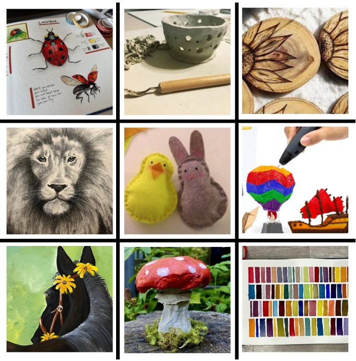 Our student art classes are designed to spark creativity, build skills, explore their artistic talents, express themselves and grow in confidence all while learning new techniques in a supportive space. We offer a variety of engaging lessons from painting, drawing, sculpting, wood burning, 3D pen art, fiber arts.