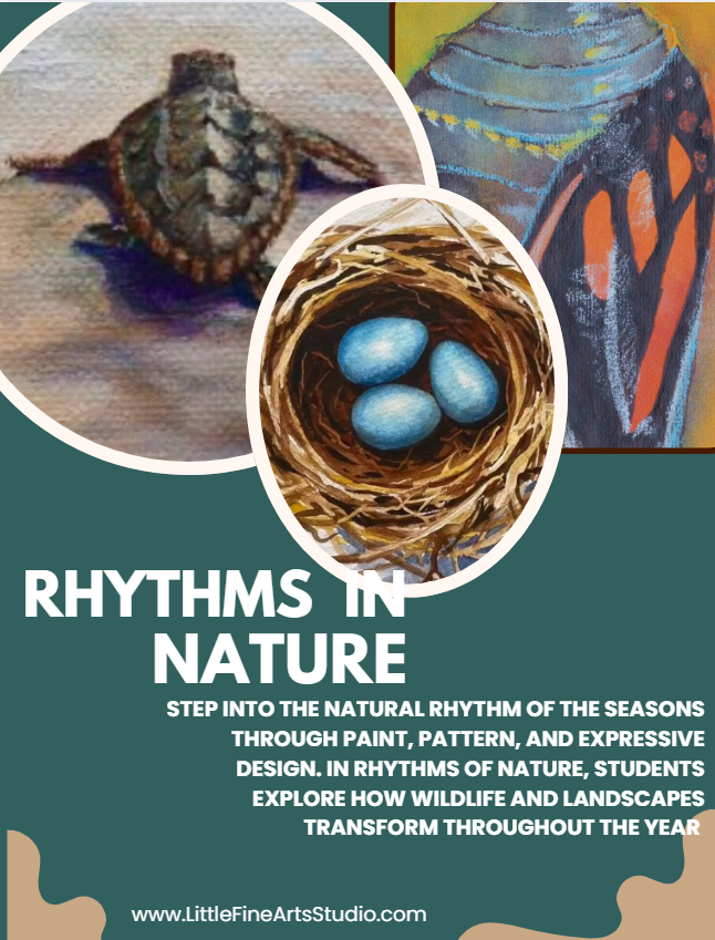 Discovering artistic harmony and pattern in wildlife and changing landscapes. Students will use a wide variety of art media such as chalk pastels, colored pencils, watercolor and more!